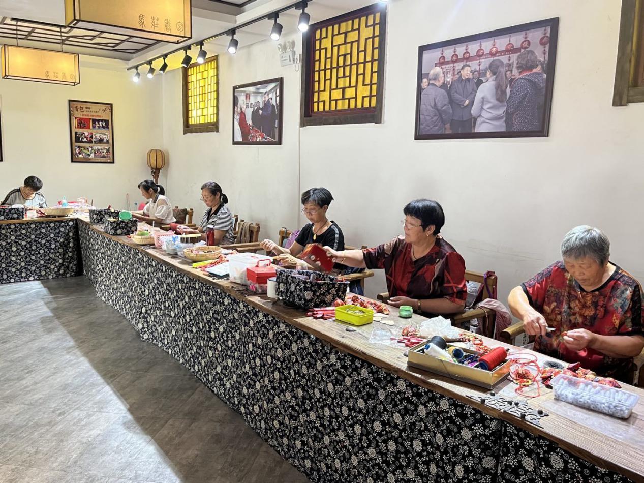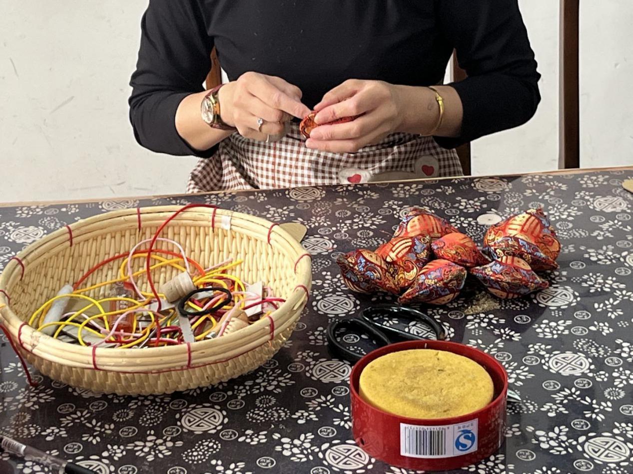 (香包大院人员缝制香包)