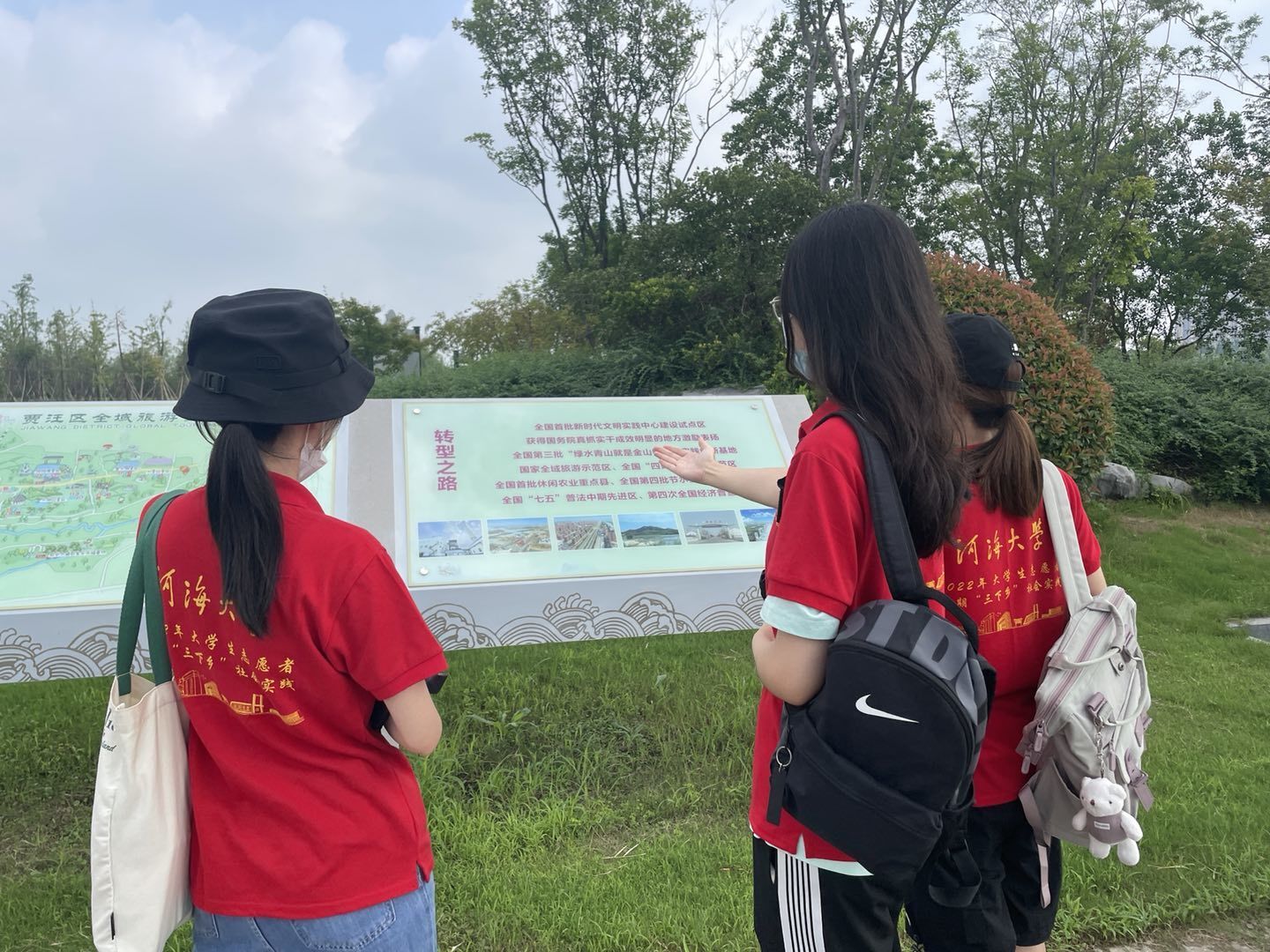 下午团队成员前往潘安湖湿地公园内,在公园道路两旁休息处向游客发放调查问卷,以知悉居民对潘安湖片区发展的了解程度。在调查过程中,采访当地居民和游客。