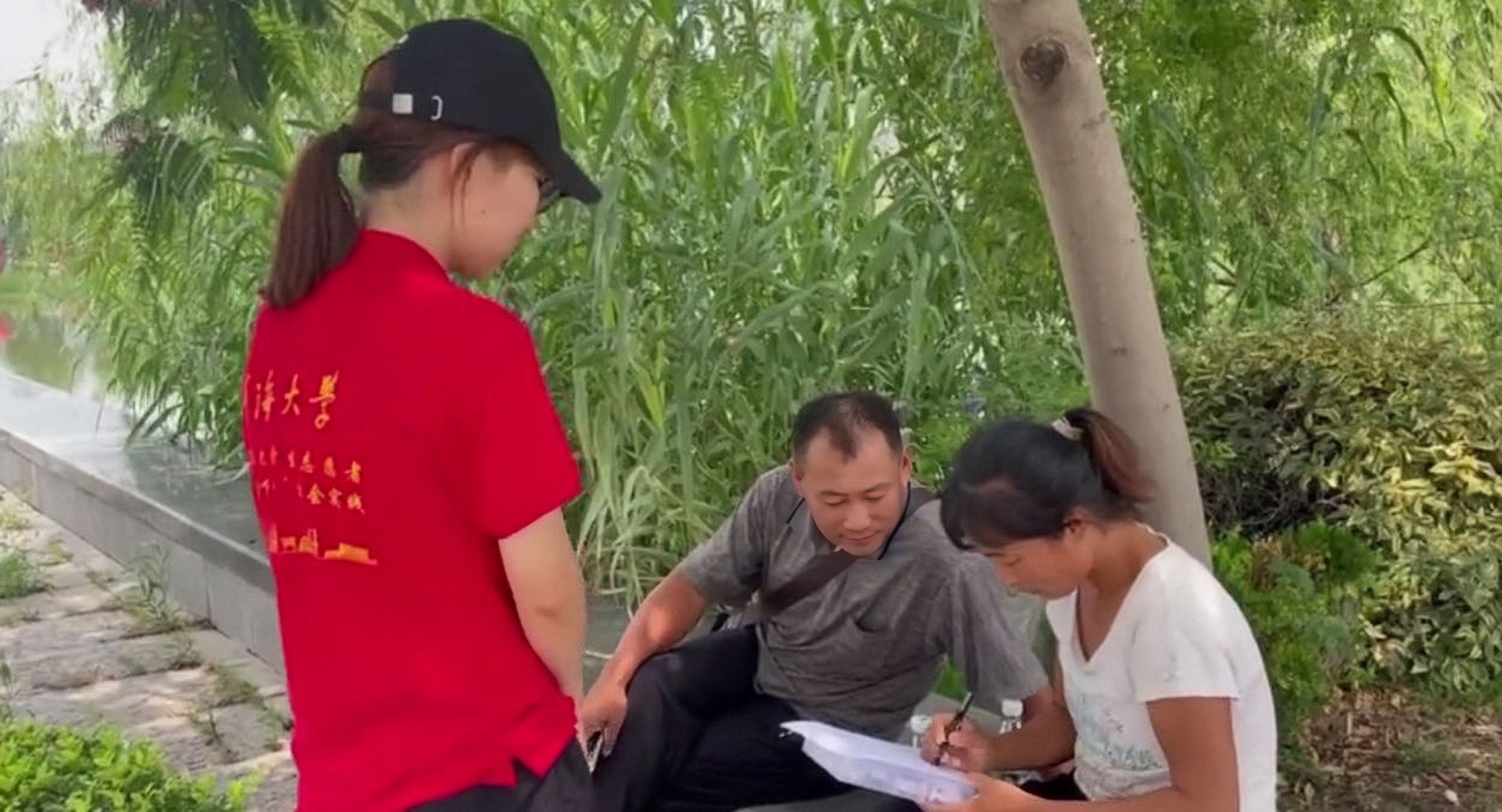 (实践团成员在公园发放调查问卷)
