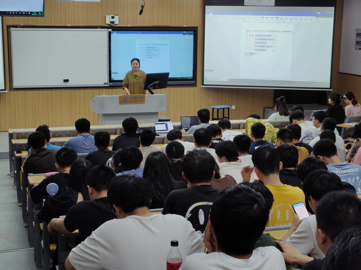 帅雨婷老师针对目前全国就业形势、学校就业政策、个人简历的撰写以及单位面试中的注意事项开展详细解读。她强调三点:一是把握就业时机。秋招是就业的黄金时期,应该把握机会,主动参加各类招聘宣讲会,积极投递简历。二是摆正就业心态,应当稳扎稳打,坚定信念,勇于到基层锻炼成长。三是注重提升个人技能,要立足实际,契合企业用人需求扬长避短,展现最好风采。