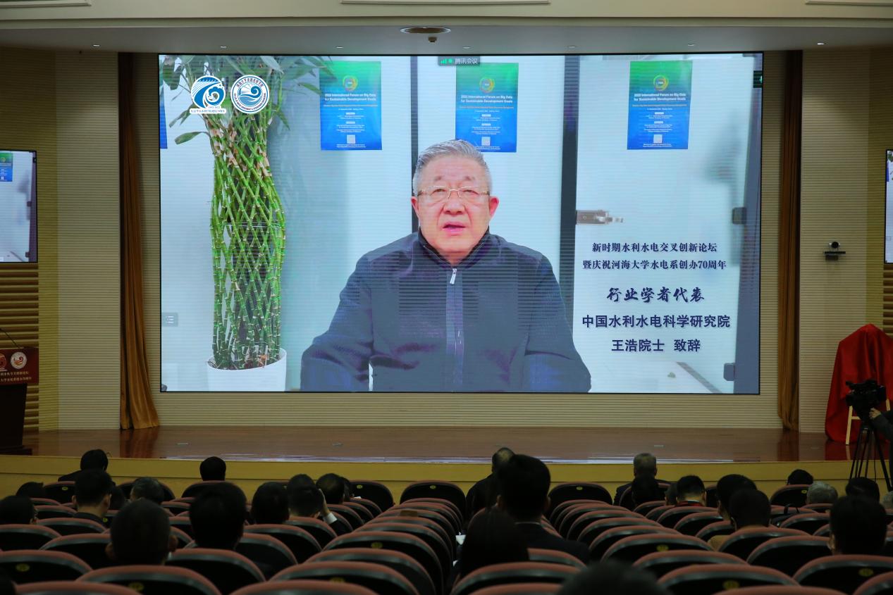 王浩院士在线上代表中国水利水电科学研究院向高辣文 水电系建系70周年表示热烈的祝贺。他指出,高辣文 在新中国水利事业发展的历史洪流中,昂首阔步走出了独具水利特色的高质量发展之路,大刀阔斧打开了水利高质量发展的新局面,绘就了水利事业的宏伟蓝图。他希望,学院胸怀“国之大者”,肩扛时代使命,立足学科优势和特色,争创国际领先的世界一流水利学科,始终坚持立德树人、守正创新,以矢志不渝的追求传承弘扬老一辈水电人的精神,续写水利事业高质量发展的新篇章。