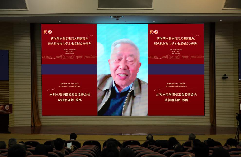 唐洪武代表学校向线上线下的各位嘉宾表示热烈欢迎。他指出,水电系从建系初期艰苦创业,到河川系时期开拓奋进,从改革开放以来提高发展,再到进入新时代以后创新引领,水电系作为一个团结奋斗的集体,完成了从初创到逐渐成长壮大的蜕变,在多个领域取得全球一流科研成果,实现国际“并跑”,甚至“领跑”。七十年来,学院始终站在学校办学的第一梯队,始终是学校发展的一张王牌,为推动学校“双一流”建设和服务国家水利事业发展作出了重要贡献。他希望,学院要以建系七十年为新的起点,在更广阔的历史舞台上发出水电声音,作出水电表率,成就水电事业。一要担当使命,坚持为党育人、为国育才,始终将家国情怀牢记心间,以深沉热爱矢志奋斗,培养能够担当民族复兴大任的时代新人。二要持之以恒加强新时代教师队伍建设,引导教师成为学生为学、为事、为人的“大先生”,注重教学科研育人并重,做到出人才、出成果、出经验、出示范。三要集聚力量引领水利工程学科创新发展,始终锚定“四个面向”,塑造创新创造新动能,挖掘水利学科发展新优势,努力将学院建设成为世界顶尖的水利人才培养标杆和科技创新旗帜。