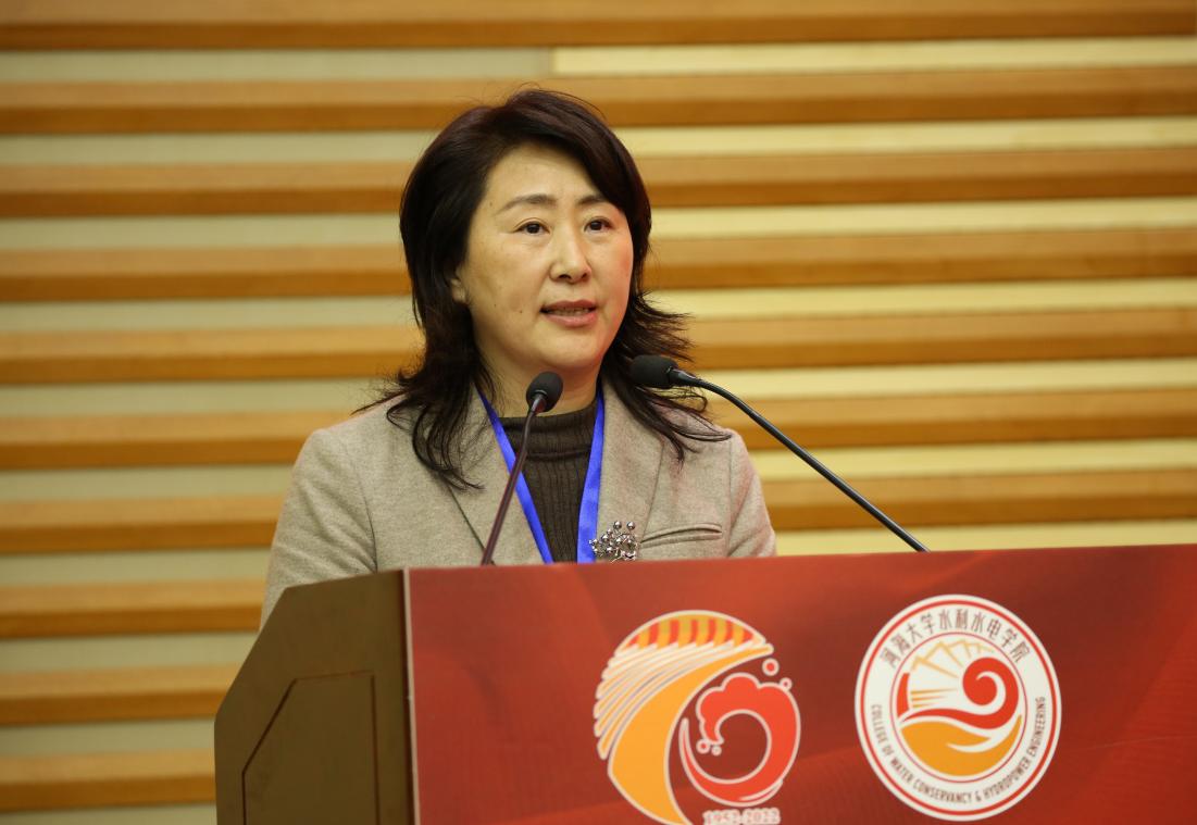 王媛代表 高辣文 向各位领导、来宾、校友的到来表示衷心的感谢和热烈的欢迎。她从发展历程、人才培养、学科建设、师资队伍、科研创新等方面汇报了学院的情况。她表示,学院将坚持立德树人根本任务,以一流党建铸魂育人,开拓新境界、取得新突破,以一流学科建设推进办学实力,实现新提升、创造新高度,以一流人才培养和一流科技成果,彰显新气象、展现新作为。在长江大保护、黄河流域高质量发展、“京津冀协同发展”“河长制”等国家重大涉水战略中积极作为、主动奉献,为新时代水利高质量发展提供强有力技术支撑和人才支持,为实现中华民族伟大复兴中国梦贡献河海水电力量。