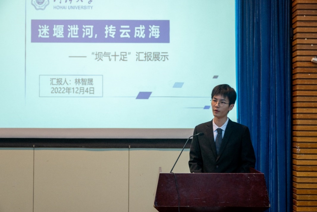 在比赛现场,选手通过答辩,PPT展示介绍所做大坝模型,说明模型制作理念。评委老师在充分了解各组坝型的特点后,感叹同学们的设计巧妙、想法独特,也从坝体结构、专业设计、创新性等多方面提出宝贵意见和进一步改进的建议。