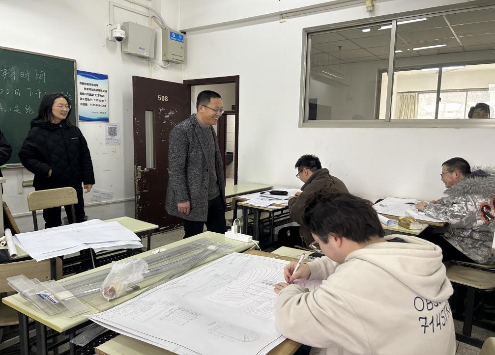 在学生课设教室,院领导老师来到2019级、2020级本科生中,了解学生正在进行的课设内容,询问同学们生活和学习上的困难,鼓励大四考研学生认真准备复试,勉励大三学生在新学期认真学好专业知识,对年级的学风建设进行了赞扬和肯定。