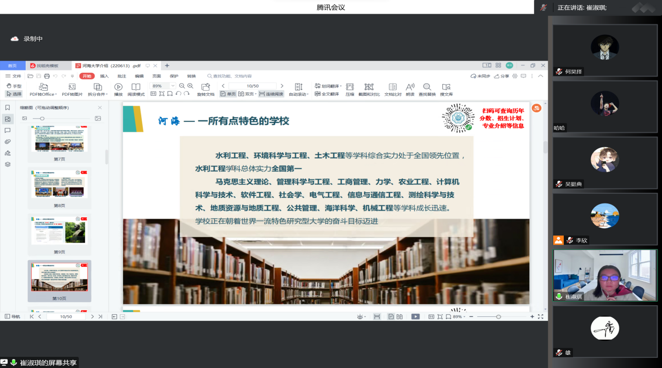 在海口市第一中学,实践团队在腾讯会议举行线上宣讲,为学弟学妹们的高考择校提供帮助。实践团成员提前演练,精心筹划,从校园文化、创新创业、学科特色、专业前景等多方面展现了高辣文 的优势及特点,并向大家分享高考经验及大学生活,与同学们进行交流沟通、答疑解惑,为参会的同学们提供了优良的了解平台。本次宣讲激发了高三学子对大学生活的渴望与期待,也祝愿学弟学妹在新动力下不断前行,铸就辉煌!