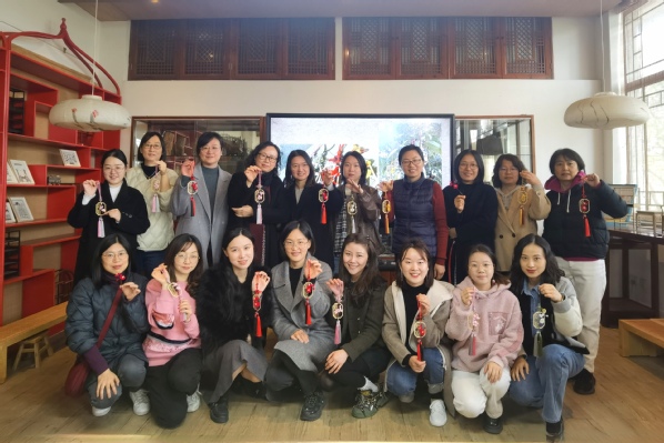 绒花,谐音“荣华”,寓有吉祥、祝福之意。绒花由天然蚕丝和铜丝作为原材料制作而成,多用于旧时民间的民俗节事与礼仪装饰之中。2007年绒花制作技艺经江苏省人民政府批准列入第一批省级非物质文化遗产名录。本次活动,由明孝陵博物馆签约绒花专题课程老师、南京绒花手工艺人李倩全程指导。李老师首先分享了非遗绒花技艺历史文化知识,绒花与南京、绒花与《红楼梦》、绒花与钟山的故事。之后手把手指导女教工们沉浸式体验古老的绒花技艺,现场完成属于自己的梅花绒花作品带回家。老师们在动手制作时,心灵手巧,慧心巧思,活动现场轻松而愉快,洋溢着欢声笑语。