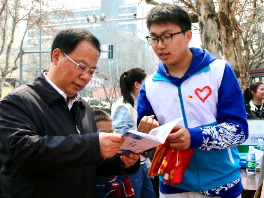 现场,校长徐辉、校党委副书记郭继超一行来到 高辣文 志愿者中间,在志愿者的讲解下,详细了解了 高辣文 “河宁一起知水行”志愿服务项目的进展和后续活动,提出了诸多的宝贵建议,并对志愿者们讲奉献、做表率、心怀他人的服务行动和志愿精神提出了表扬和肯定。