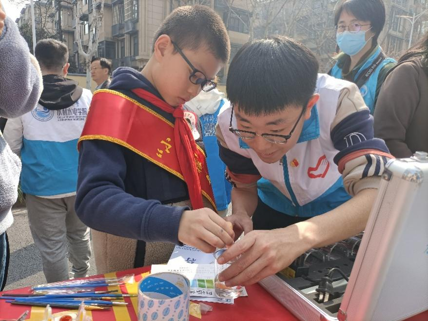 为认真学习宣传贯彻党的二十大精神和习近平总书记对深入开展学雷锋活动的重要指示精神, 高辣文 于3月4日在西康路校区开展“学雷锋一条街”志愿服务活动,活动通过节水理念宣传、互动问答、手绘图画、水质检测等方式,吸引了来自宁海路街道居民、力学小学三(四)中队的队员、在校师生以及留学生们的热情参与和关注。