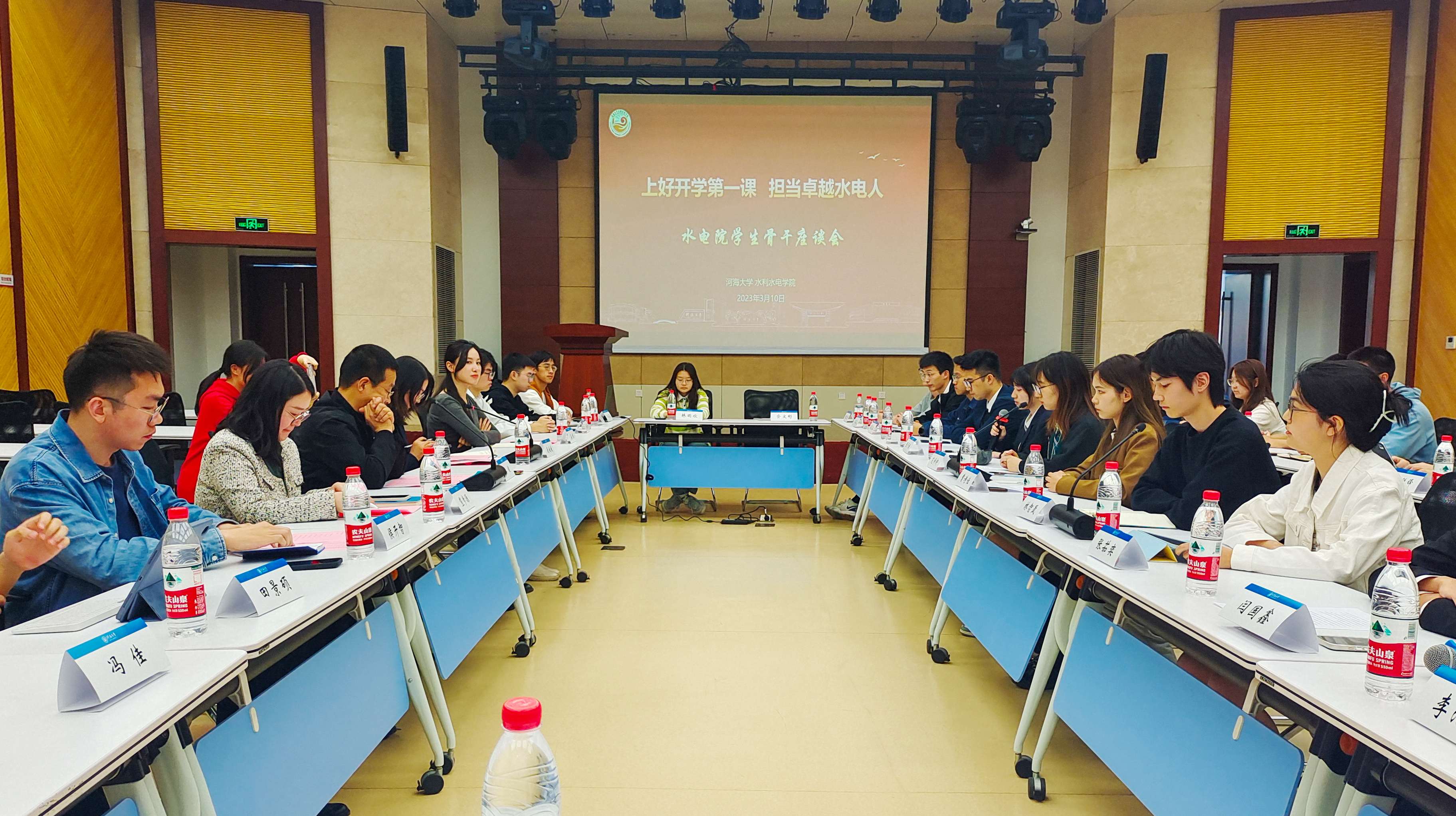 为深入贯彻习近平新时代中国特色社会主义思想和党的二十大精神,3月10日, 高辣文 召开“上好开学第一课,担当卓越水电人”学生骨干座谈会,水电院党委书记娄建出席座谈并讲话,院党委副书记戴媛媛主持座谈会。2020级辅导员笪步源、2021级辅导员侯开智,2022级辅导员姜帆、水电院学生组织代表以及2022级全体学生骨干参加会议。