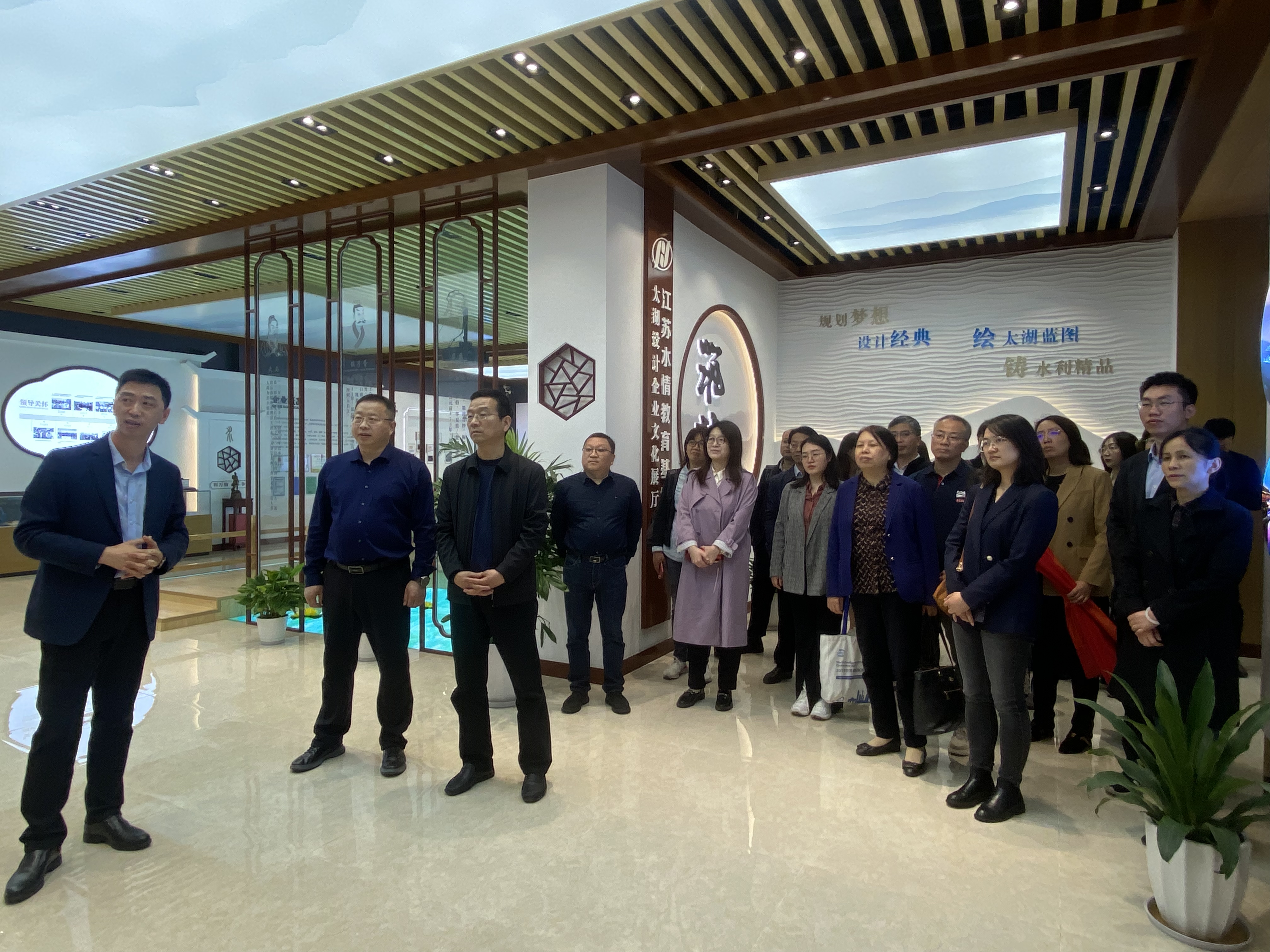 4月14日,学院赴江苏省太湖水利规划设计研究院(下文简称“太湖院”)开展访企拓岗交流活动。学院党委书记娄健、党委副书记戴媛媛带队学院研究生导师代表:水利水电工程学科方国华、周建旭,水力学及河流动力学学科傅宗甫,水工结构工程学科周兰庭,安全科学与工程学科任杰和学院工程教育与社会合作办公室主任甘磊、副主任陈胜,水力学及河流动力学研究所副所长、党支部书记闫静,水利水电实验中心副主任初文婷以及两办行政人员、辅导员共同参与。太湖院董事长展永兴、副总经理兼规划分院院长吴小靖、总工程师顾晓峰、总规划师汪院生、党委副书记兼综合管理部主任黄晓东等相关部门负责人出席座谈。