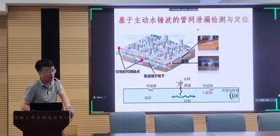 王洵教授以《Bootstrap重采样法:供水管网泄漏检测的可靠性评估》为题展开学术报告。针对城市供水管网水锤波测试受限、实验样本少这一问题,王教授提出了一种基于Bootstrap重采样法的管网泄漏检测的可靠性评估方法,可以通过少量水锤波实验数据表征真实管网的复杂噪声与不确定性,最终实现泄漏报警与区间定位,为管网维修提供更充分、可靠的决策信息。