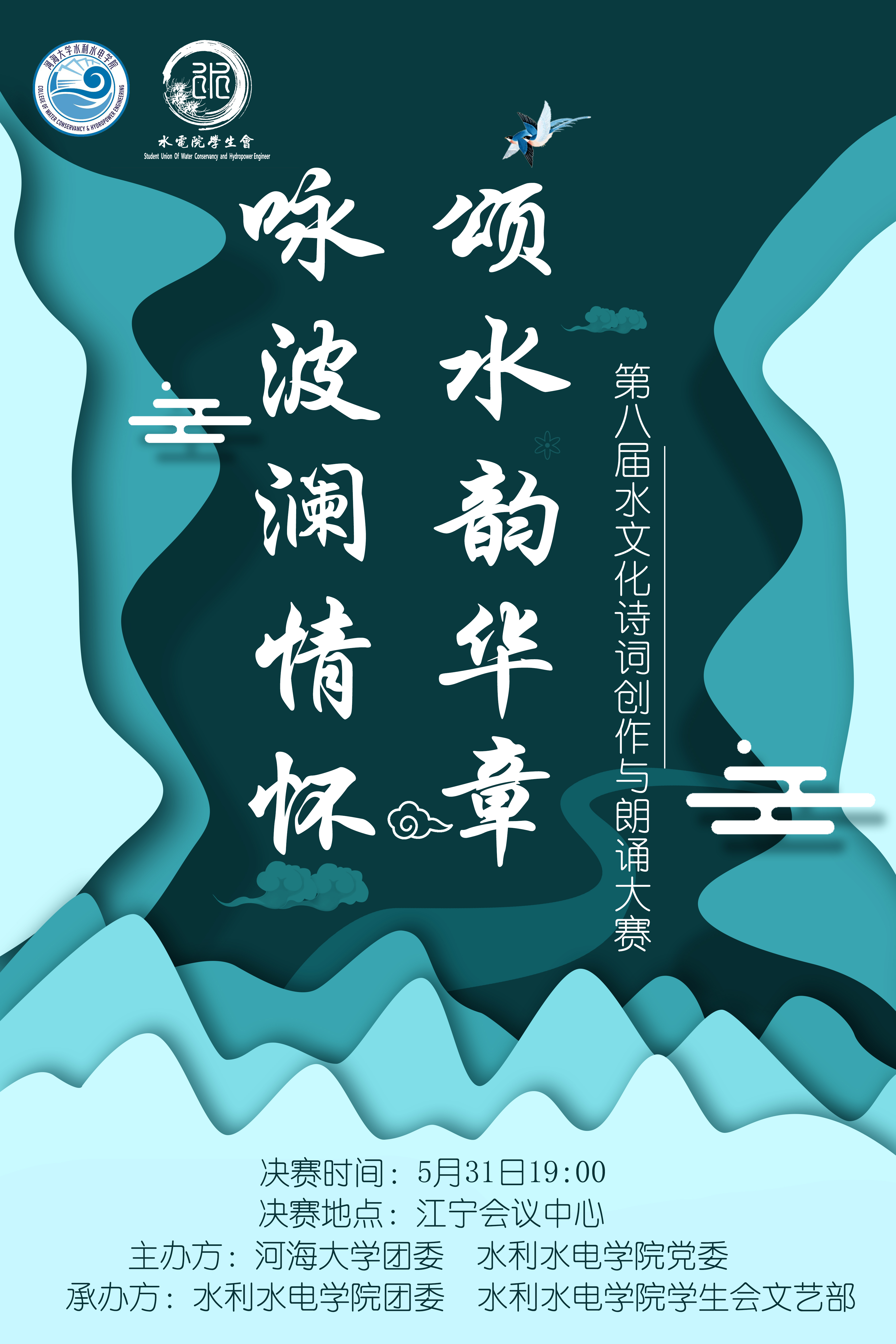 水文化诗词创作与朗诵大赛作为 高辣文 文化传承的传统活动之一,每一年吸引着全校选手踊跃参加,本次活动范围更是扩大到了“水研联盟”六所水利高校,在为同学们提供展现诗词风韵、文人风骨的同时,也推进了“水文化”精神的传承,鼓励学生将自我风采与时代精神相契合,为水利高质量人才培养注入水文化精神力量。