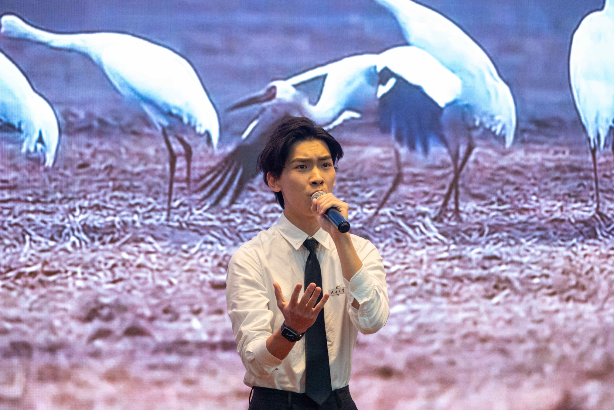 比赛现场邀请到获得创作组一等奖的旷雅月同学,与大家分享创作《候鸟》时的心得感受。作为崇尚着“天下有溺犹己溺”精神的水之子,她将候鸟与家乡洞庭湖的保护结合起来,以小寓大,借助候鸟的视角,以诗歌的形式表现对水文化的热爱与对水利事业的赞颂。