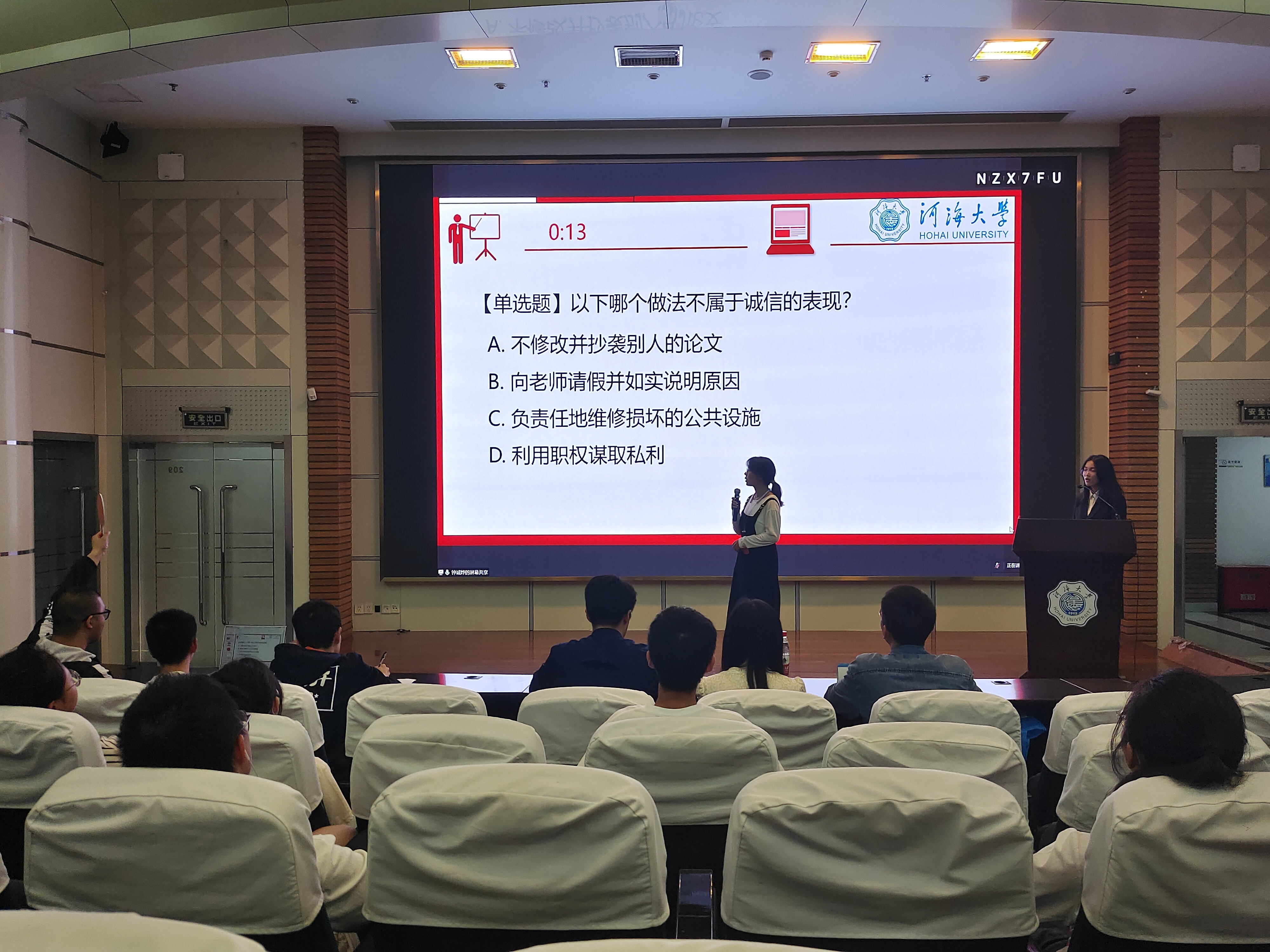 为认真学习贯彻习近平新时代中国特色社会主义思想和党的二十大精神,结合学校“诚信·励志·感恩”主题教育月活动的相关安排,由校学生工作处主办、 高辣文 承办的“学习二十大,弘诚信之风,筑青春之梦”诚信教育知识竞赛决赛于江宁会议中心举办。本次活动邀请土木与交通学院2021级辅导员韩新禹、公共管理学院2021级辅导员张睿宸与 高辣文 2021级辅导员侯开智担任评委,共有来自19个学院的180余名同学参加。