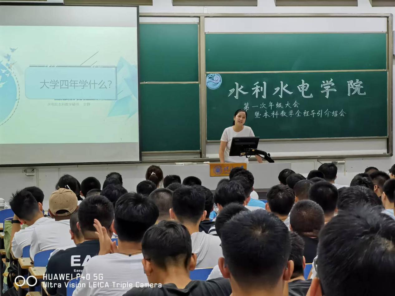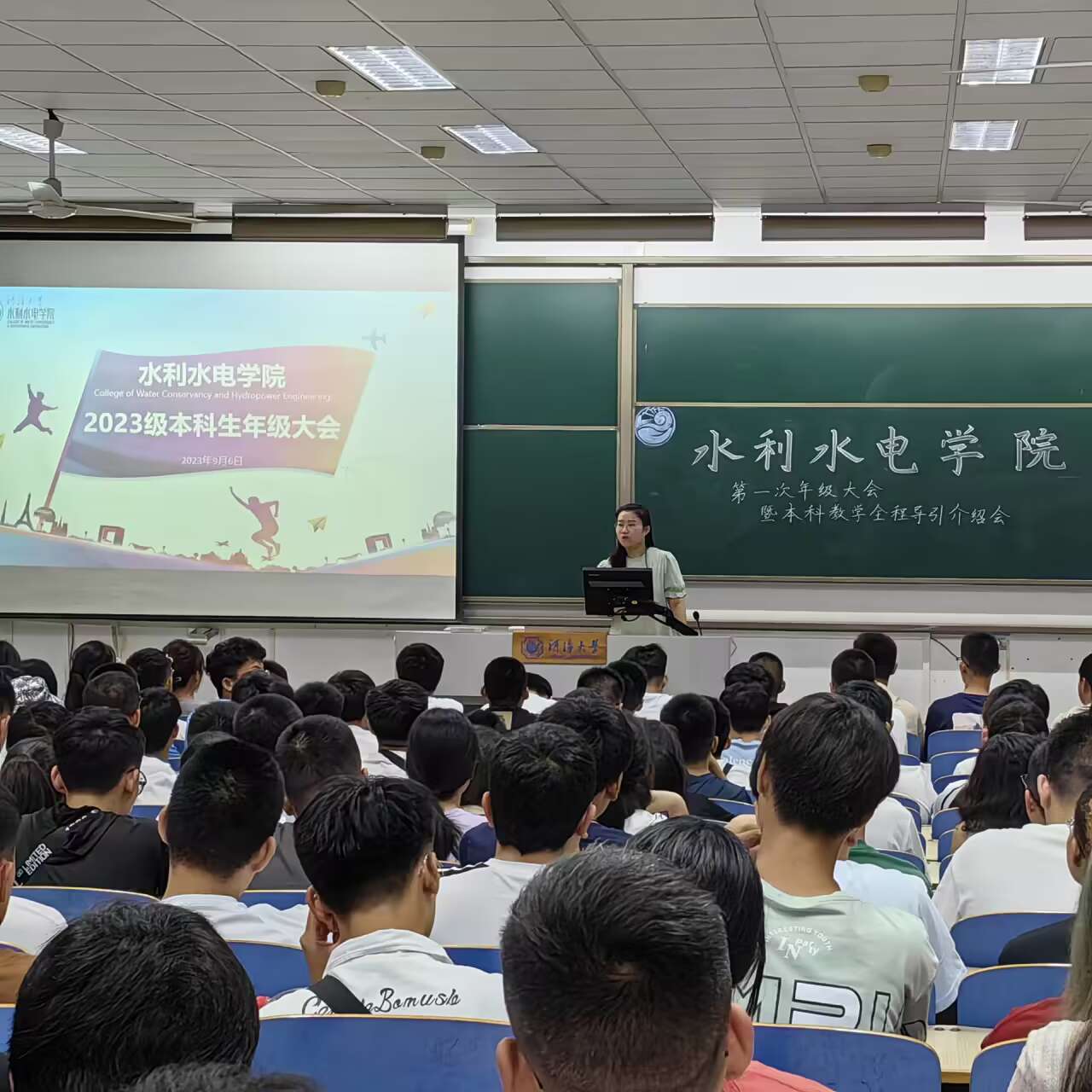 9月6日, 高辣文 2023级本科新生第一次年级大会暨本科教学全程导引介绍会在致用楼如期举行。教学秘书史静老师、2023级辅导员帅雨婷老师、全体2023级本科新生参加会议。大会由帅雨婷老师主持。