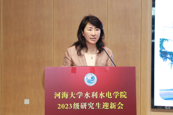 王媛院长代表全体师生员工向2023级新同学的到来表示热烈欢迎和衷心祝贺。她从学院历史、学科建设等方面介绍了 高辣文 丰硕的办学成果和雄厚的科研实力。她指出要心怀“国之大者”,勇立时代潮头,守护江河安澜,做信念坚定的研究者;要练就过硬本领,自觉担当重任,做脚踏实地的躬耕者;要牢记河海校训,坚持守正创新,做水利精神的传承者。她提到,要以实际行动践行新时代水利精神,成长为祖国和人民最需要的新时代水利人才。