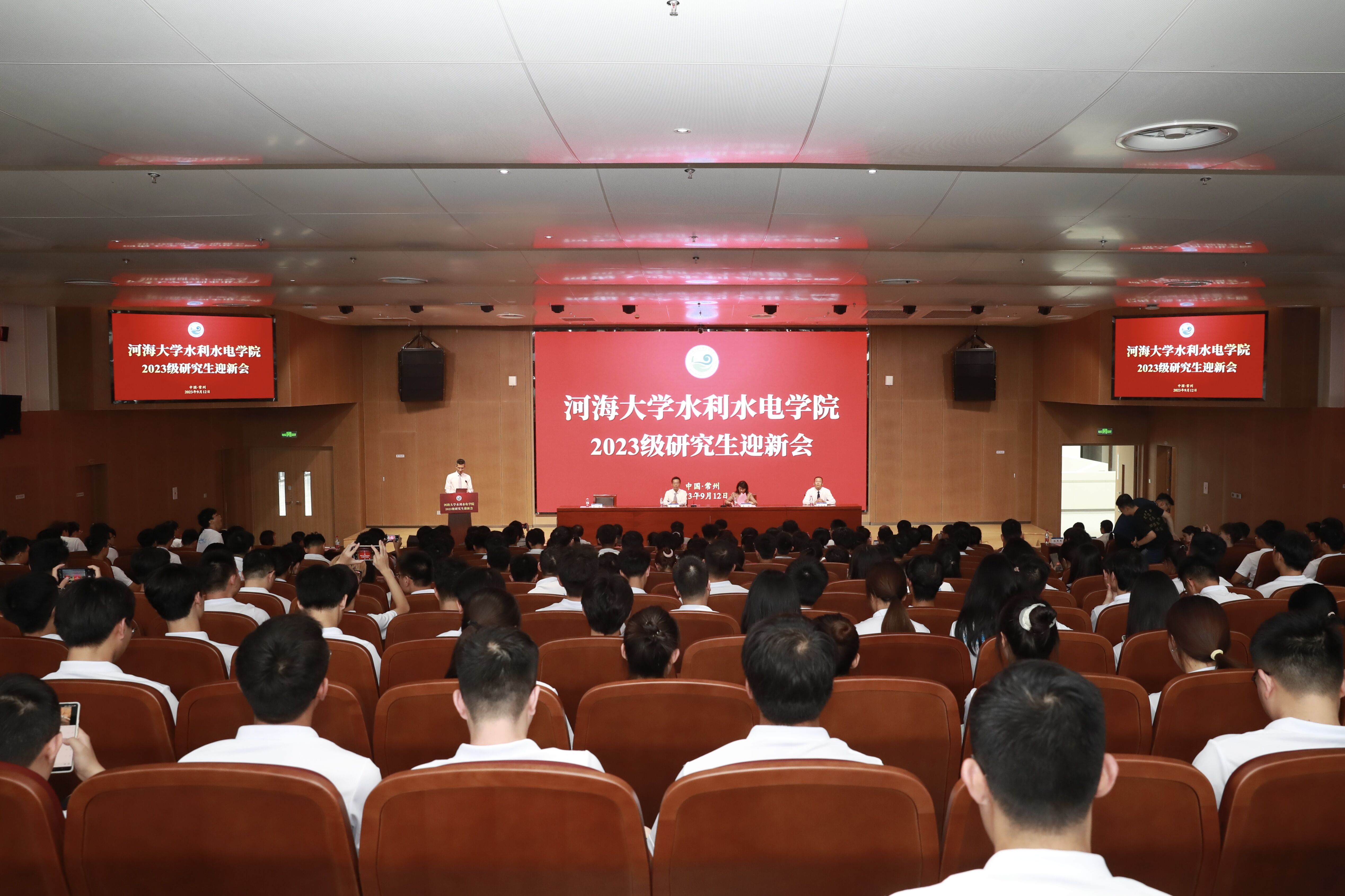 在常州校区行政楼报告厅隆重举行2023级研究生迎新会。院长王媛出席会议并致辞,院党委书记娄健、副院长王建、副院长赵兰浩出席会议。学院相关系所负责人、教学秘书,辅导员及2023级全体研究生参加会议。会议由副院长王建主持。