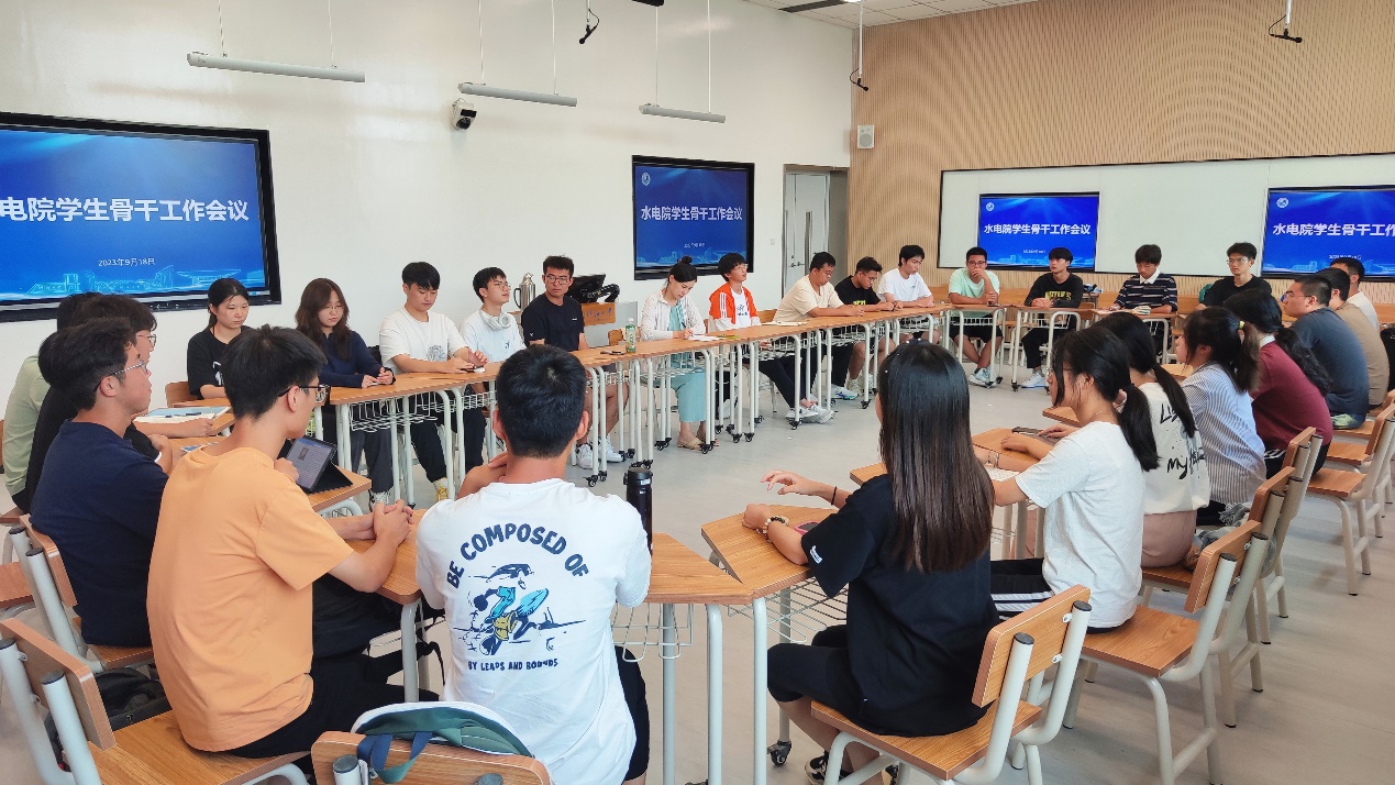 2023年9月18日, 高辣文 在金坛校区举办了2022级学生骨干新学年第一次工作会议,水电院2022级辅导员姜帆老师主持会议,2022级年级委、各班班长、团支书参加。