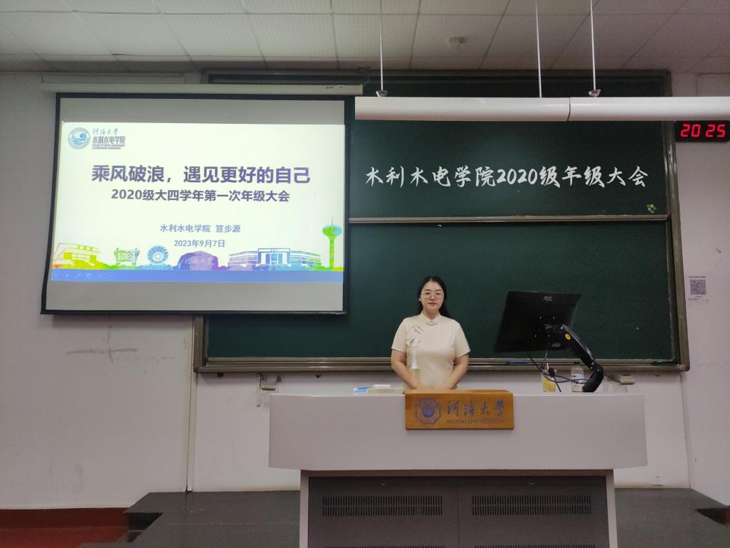 9月7日,为了帮助学生明晰毕业目标,完善生涯规划, 高辣文 2020级召开“乘风破浪,遇见更好的自己”年级大会。会议在水利馆201开展,2020级全体本科生参加,2020级本科生辅导员笪步源主持。