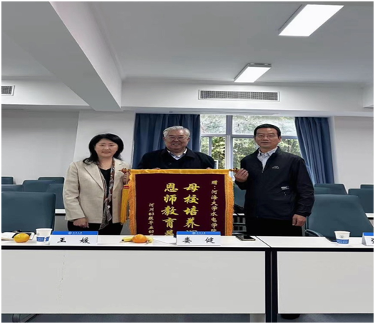 夏镜如老师主持座谈,表达了同学们再聚首的激动之情以及对帮助组织活动的真切感谢。原江苏省民政厅厅长张秉铎代表同学们感激母校的精心培养和恩师的谆谆教诲,并代表河川63届同学向学院赠送了锦旗。老校友一一发言,畅谈大学时光,回忆峥嵘岁月,回顾重大水利工程的建设历程,感念河海传承、水利精神。
