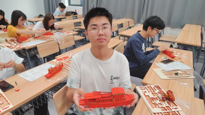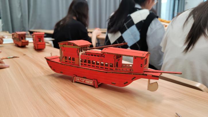 时代变迁,精神永驻。其后各团支部开展了红船模型拼装活动,在拼装过程中,同学们切身体验了古船模型的结构特征和功能特点,也深刻感悟到了“红船精神”,上了一堂生动的党课。“红船精神”昭示同学们,在新时代新长征的进程中,我们不能因循守旧、刻舟求剑,必须勇立潮头、敢为人先,用创新、奋斗、奉献的精神和实际行动永葆党的生机和活力。活动末尾,水工一班团支部的王目旭同学表示:“红船模型看似简单,但是拼装起来却不容易。这就与红船和党的发展历史一样,看似是一条普通的游船,却承载着党和国家的历史记忆,汇聚着中华民族的革命精神。手中拿着拼好的红船,心中满是成就感,本次活动让我对红船精神的内涵有了深刻的理解,从红色基因中汲取了强大力量。”