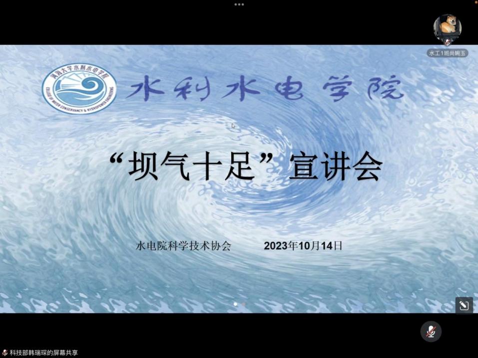 近日, 高辣文 举办第十七届“坝气十足”坝型设计大赛线上宣讲会,会议邀请往届获奖团队成员做经验分享,全校各参赛团队、院科协全体成员参加宣讲,各参赛队伍代表参加。