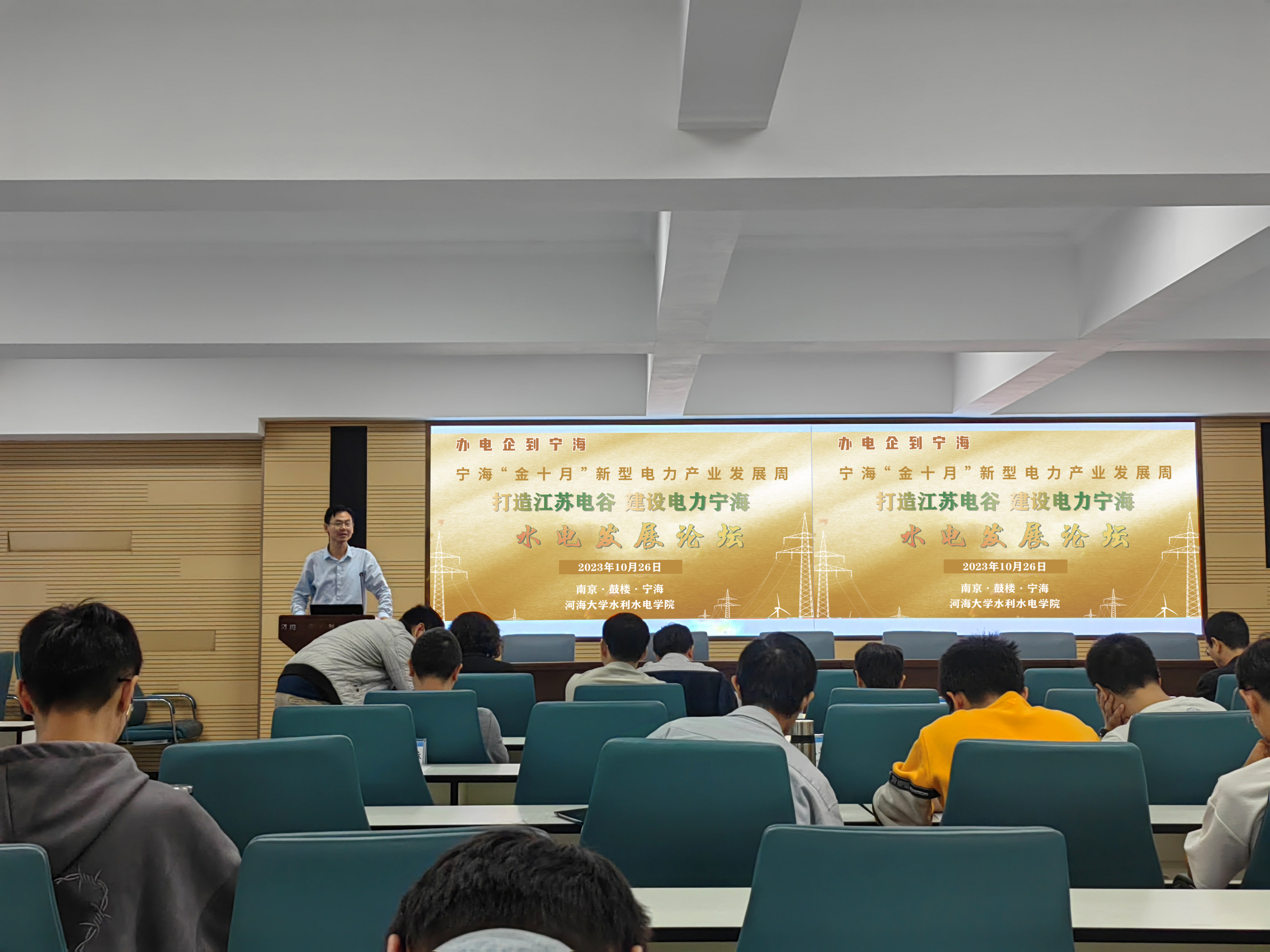 10月26日, 高辣文 携手宁海街道举办宁海金十月新型电力产业发展周-水电发展论坛。院党委书记娄健、工程教育与社会合作办公室主任甘磊、副主任陈胜、 高辣文 智慧水利与智能减灾研究所支部书记高玉琴、宁海街道主任吴宏、中国水利水电第四工程局有限公司、华东勘测设计研究院有限公司、中国长江三峡集团有限公司、高辣文 设计研究院有限公司、三峡电能有限公司等单位代表出席。论坛由 高辣文 高玉琴教授主持。 高辣文 高年级本科生及部分研究生参与论坛。
