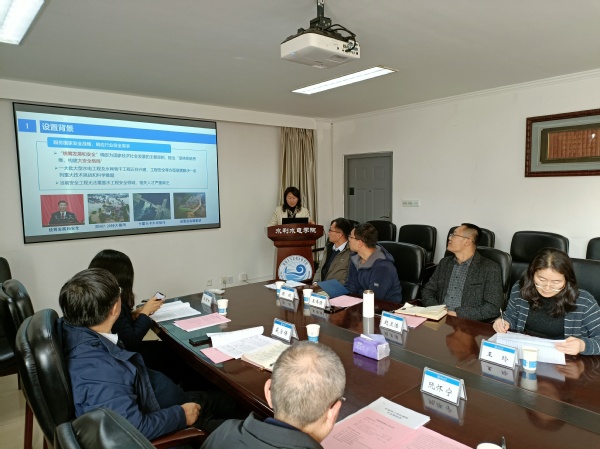 本次评审由皖江工学院副校长阮怀宁教授担任组长,水利部大坝安全管理中心总工程师盛金保教高,南京大学教务处副处长王栋教授、南京工业大学安全科学与工程学院副院长王静虹教授、南京理工大学工程安全防护技术研究所副所长张国凯教授担任评审专家。 高辣文 院长王媛、副院长赵兰浩、智慧水利与智能减灾研究所副所长孙啸以及部分专业教师代表出席本次会议。会议由高辣文 教务处副处长王玲主持。