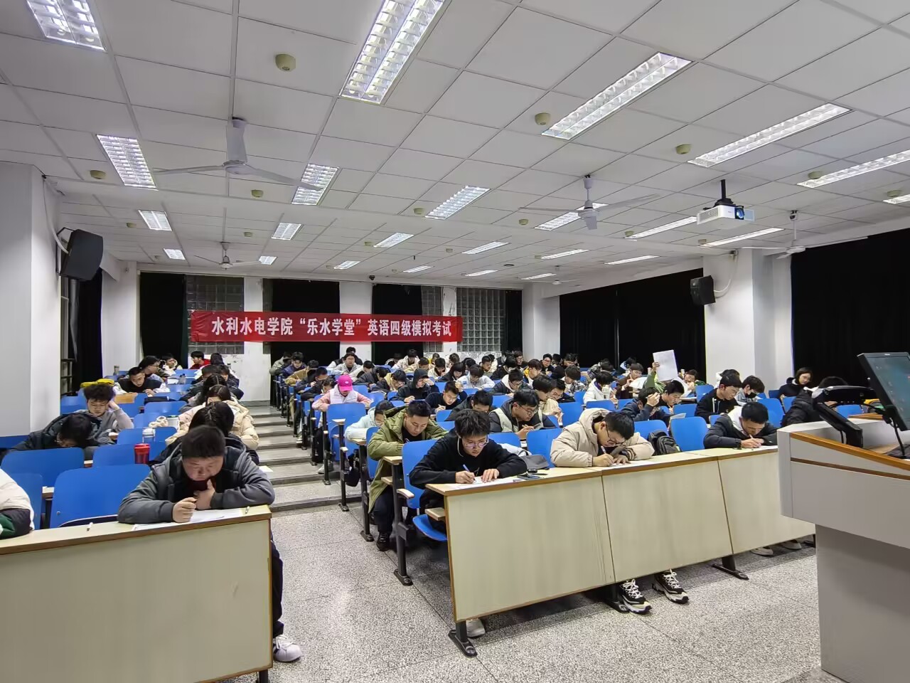 2023年12月11日,为帮助大一新生做好英语四级考试准备, 高辣文 学生会面向2023级全体学生组织开展“乐水学堂”英语四级模拟考试。