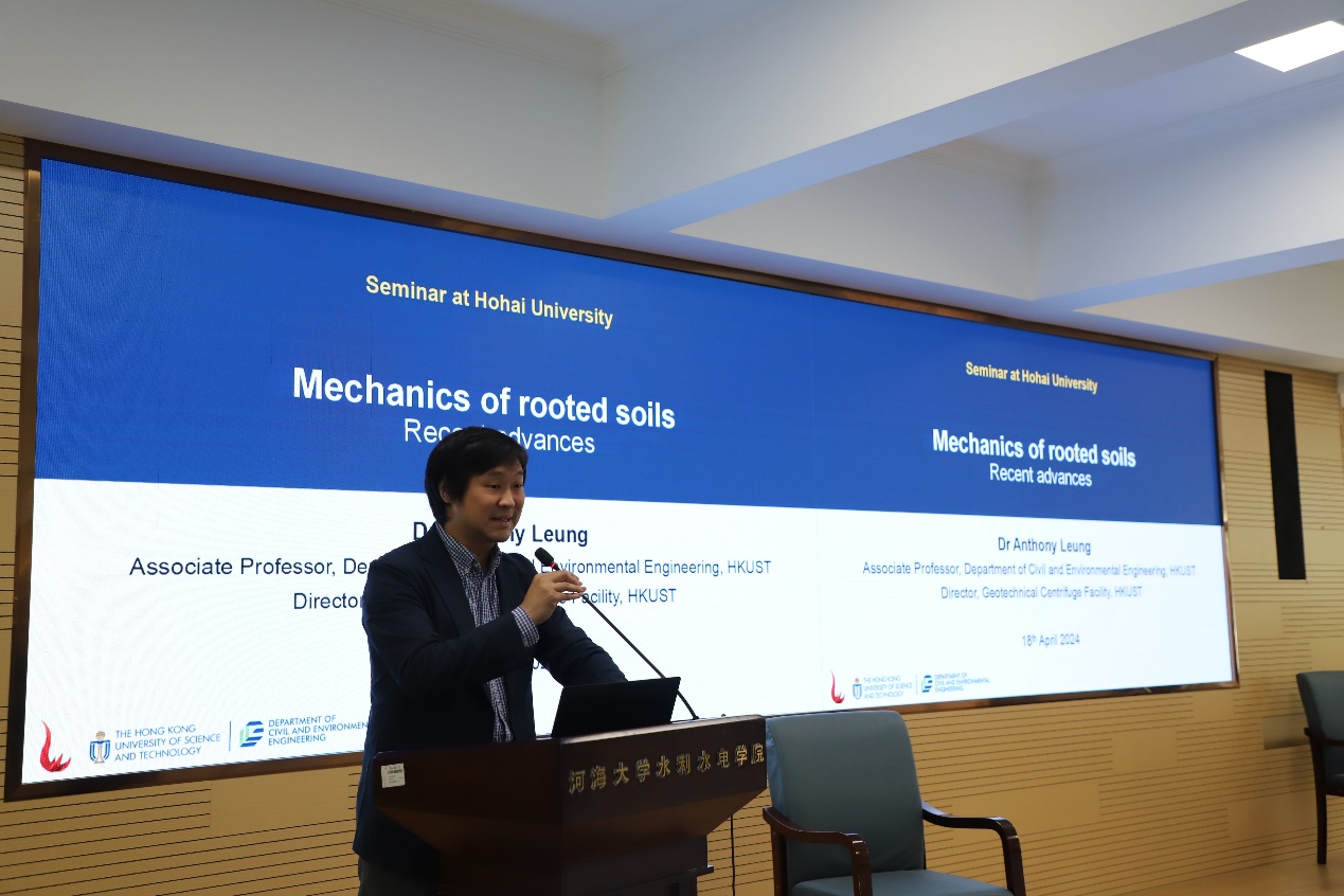 梁钧教授应邀做题目为“Mechanics of rooted soils: recent advances(根系土力学新进展)”的学术报告。报告聚焦非饱和根系土的水力-力学特性的最新科学发现及其对生态斜坡工程设计的影响,讨论人工智能(AI)在发现孔隙尺度下土壤-根系-水相互作用研究中的最新进展,相关研究是气候变化加剧背景下防灾减灾的创新实践,与 高辣文 智慧水利、安全科学与工程相关学科研究高度契合,受到参会老师和同学的热烈欢迎。在交流研讨环节,青年教师和研究生与梁钧教授围绕非饱和实验技术、人工智能应用等问题开展了热烈的学术互动,梁教授分享了他对相关问题的见解,并对青年学者未来的研究提出了建议。
