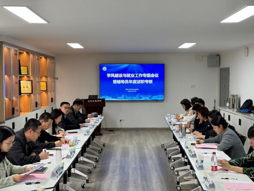 4月19日, 高辣文 举办学风建设与就业工作专题会议暨辅导员年度述职会议。院领导班子成员、各系所长、教师支部书记、班导师、辅导员与学生代表参加会议。会议由学院党委副书记戴媛媛主持。