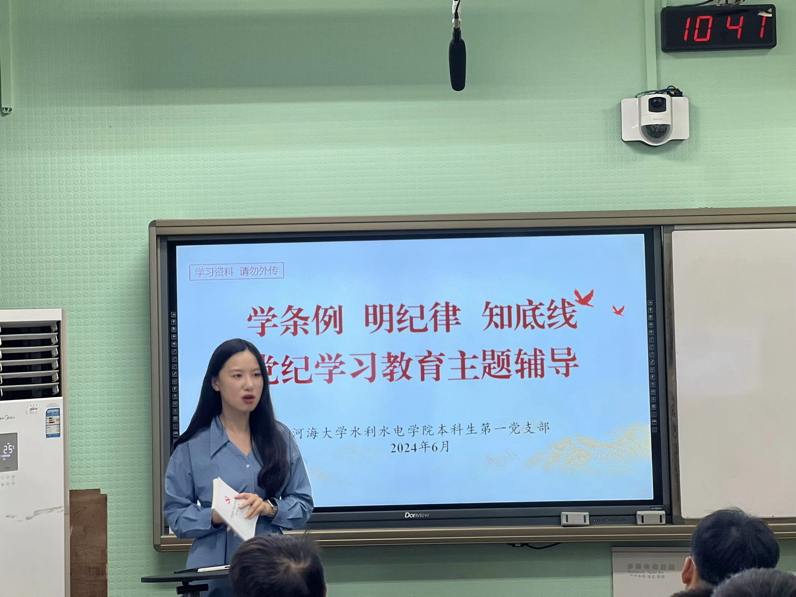 开展党纪学习教育,是加强党的纪律建设、推动全面从严治党向纵深发展的重要举措。水电院本科生第一党支部按照学校、学院党委要求,扎实开展党纪学习教育,打造党纪学习教育样板党课,不断巩固拓展党纪学习教育成果,推进支部党建工作高质量发展。(文/姜帆、冯佳,图/陈贤博)