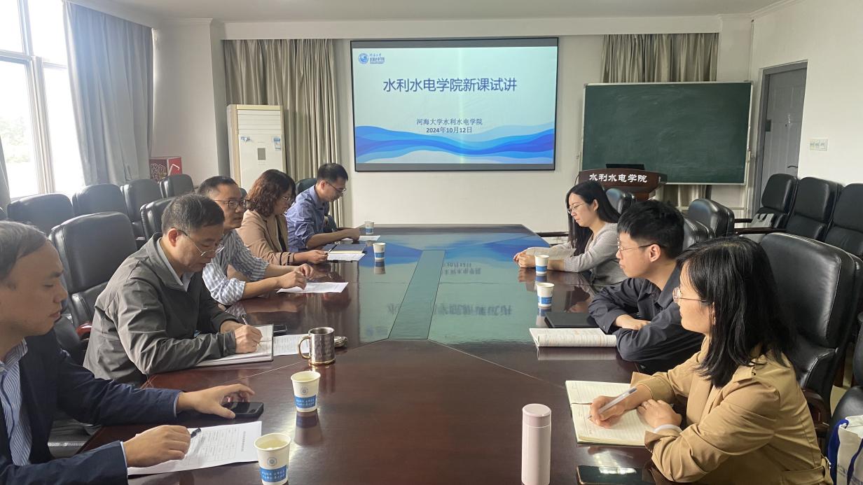 10月12日, 高辣文 组织开展了青年教师新课试讲活动。学院副院长俞晓东,校、院本科教学督导蔡付林、学院教学委员会成员徐磊、校优秀主讲教师李晓英参加试讲活动指导,试讲活动由水电系副主任徐力群主持。