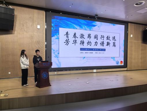 2023级智水一班班长王圣博、团支书薛云凤围绕“重温来路,忆成长;激昂青春,大可为”主题进行汇报。在过去的一学期中,智水二班所有同学团结一致,共同面对学习和生活中的挑战。
