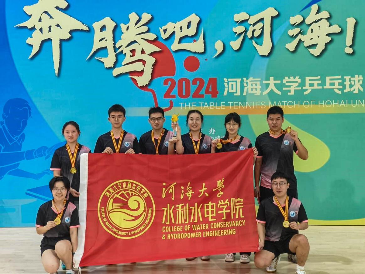 11月9日至10日,2024年“河海杯”乒乓球比赛在常州校区的体育馆火热上演。赛前,通过院内乒乓球选拔,本科生冯越、李仲然、研究生赵旭、张姚、邢容、李奕函、戴诗菡和岳诗涵作为队员参赛。通过两天的激烈竞争, 高辣文 乒乓球队员们斗志昂扬,一路披荆斩棘,荣获2024年“河海杯”乒乓球比赛冠军。