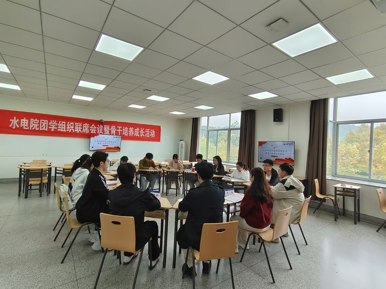 为进一步提高 高辣文 团学组织凝聚力,加强各组织主席团的协作交流,提升主席团成员的工作能力与交流沟通能力,2024年11月13日, 高辣文 举办“水电优才-先锋骨干领潮计划”团学组织联席会议暨骨干培养成长活动。院团委、研究生会、学生会、青年志愿者协会、学生科协、传媒中心全体主席团成员参加,会议由院团委书记笪步源主持。