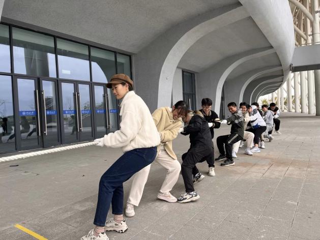 为培养同学们努力拼搏、永不言弃的精神,增强班级凝聚力,促进交流,丰富同学们的课余生活。11月17日, 高辣文 2023级本科生在常州校区田径场西侧开展“力拔山河”拔河比赛活动,各班级代表队以饱满的热情和昂扬的斗志,在这场力量与策略的较量中一展身手。为秋冬日的校园增添了一抹活力与团结的色彩。