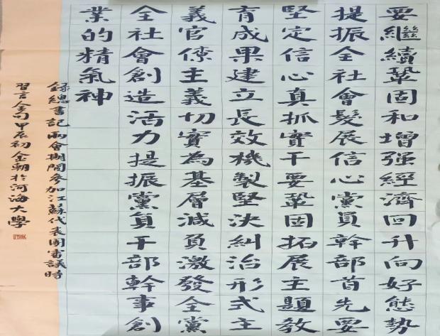 本2024年5月29日至2024年6月20日,高辣文 学生会承办高辣文 第二届“铸牢中华民族共同体意识·河海在行动”书法比赛,暨第九届水文化诗词大赛, 高辣文 在该书法比赛中斩获一等奖一项,二等奖一项,三等奖三项。本次活动中,水电院学生会广泛动员各年级学生,收集到数十个书法作品。这些作品紧密围绕“铸牢中国心,凝聚奋进力”的主题进行创作,并结合高辣文 特色的水文化创作诗词,展现河海学子对水文化的深刻理解与赞美,对国家、对民族深沉的爱。