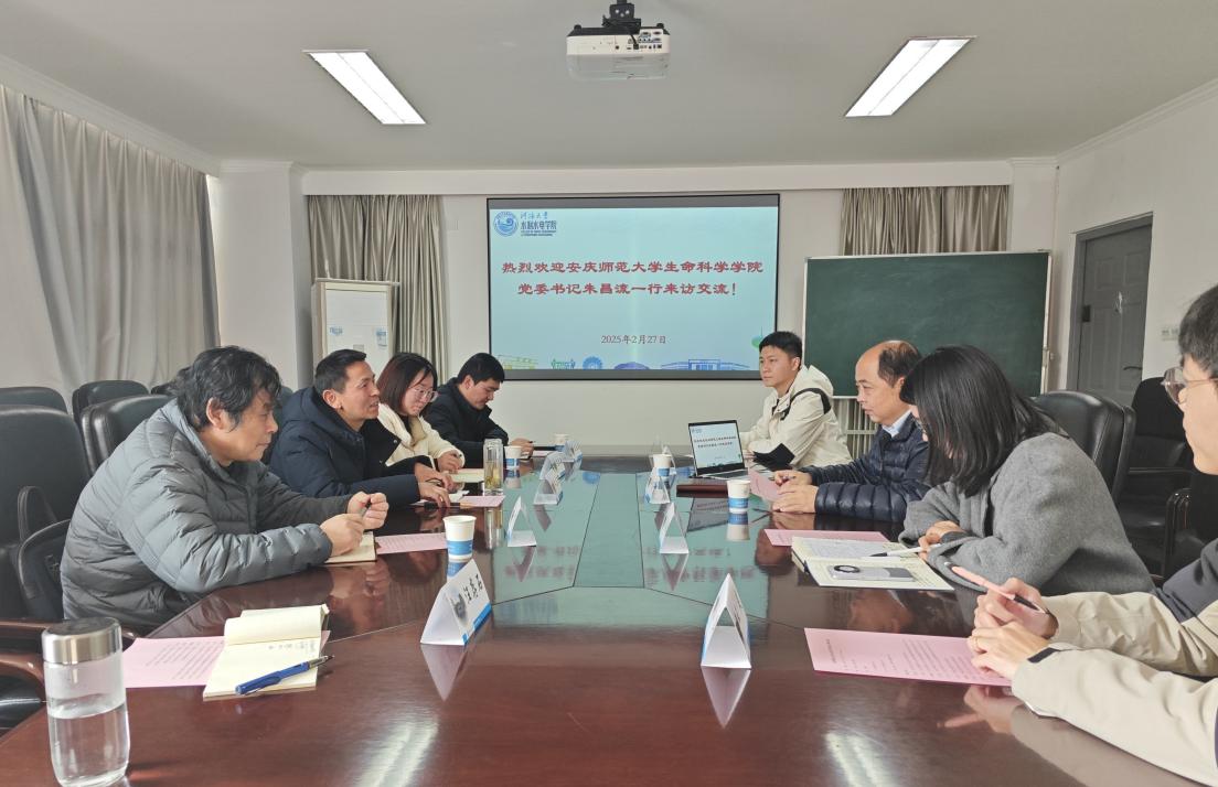 2月27日下午,安庆师范大学生命科学学院党委书记朱昌流一行来 高辣文 座谈交流。水生生物保护与水生态修复安徽省高等学校工程技术研究中心主任于道平及其团队成员陈敏敏、连玉喜、汪存石,学院副院长冉启华、副院长俞晓东,院党委副书记戴媛媛,水力学及河流动力学所教师惠辞章,研究生辅导员陈思思以及水力学及河流动力专业博士研究生王昊参加了本次座谈会。
