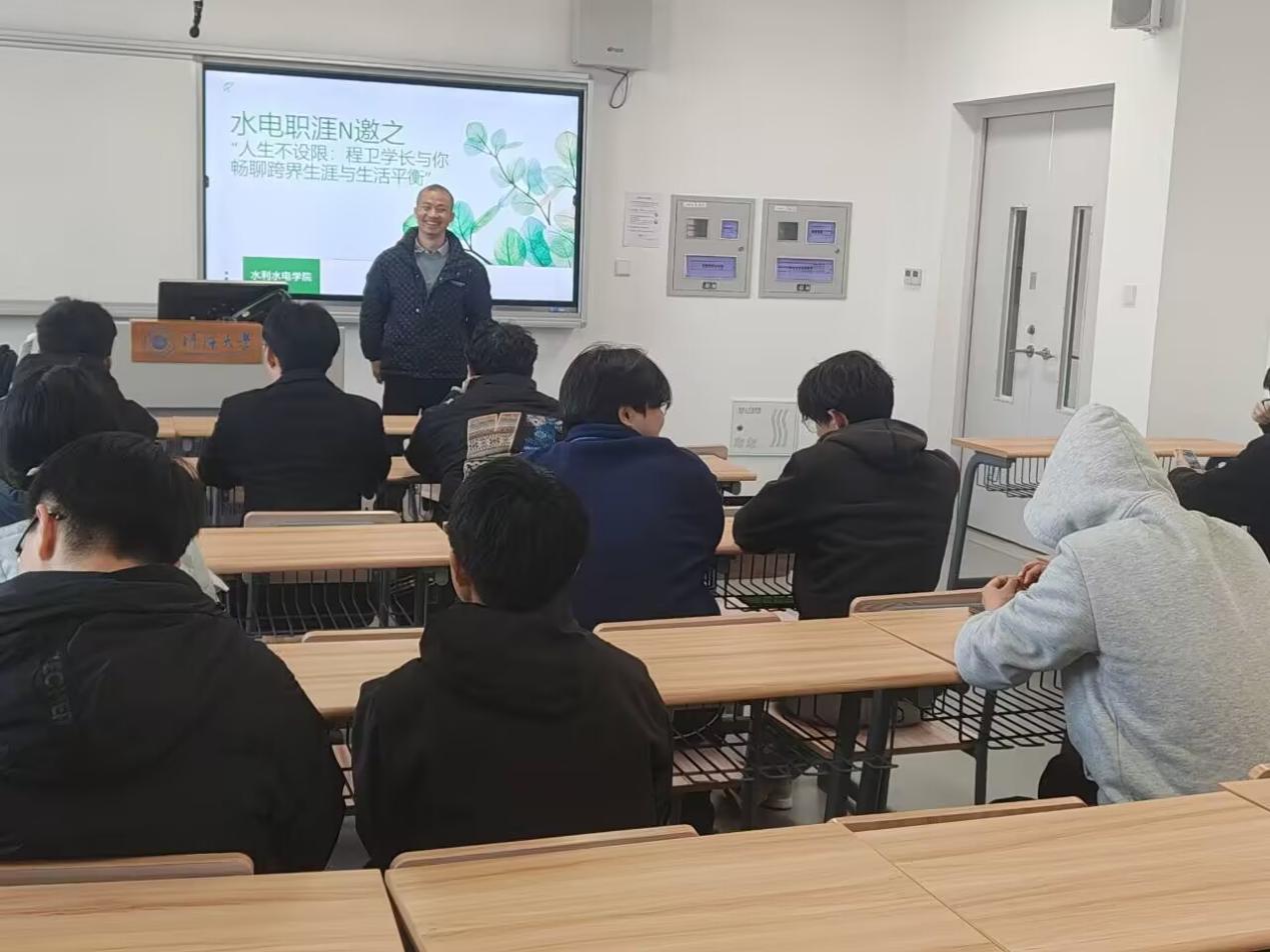 近日,为进一步拓宽学生视野,引导学生理性规划职业生涯,提升生活幸福感, 高辣文 于常州校区举办“水电职涯N邀”之“‘人生不设限’程卫学长与你畅聊跨界生涯与生活平衡”讲座。本次讲座特邀中石化石油物探技术研究院副研究员程卫。讲座由班导师张培培老师主持,2023级本科生参加。