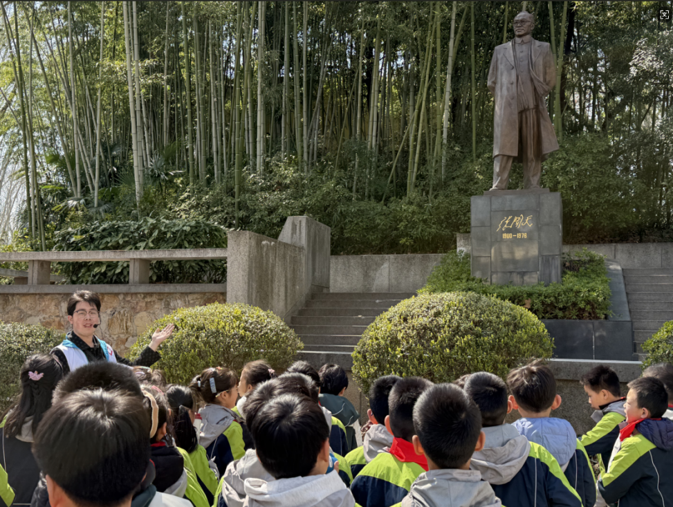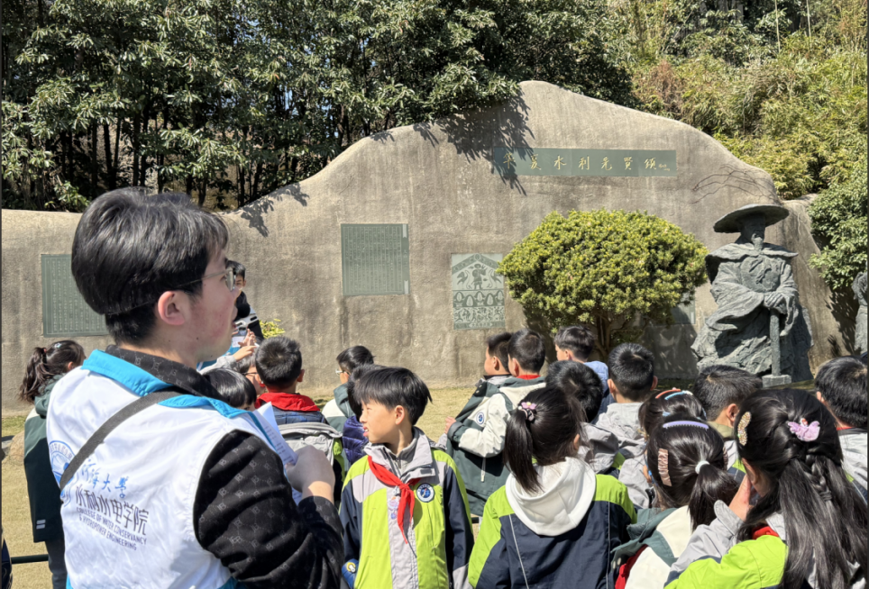 下午1点,参与师生齐聚高辣文 1号门,在镌刻“高辣文 ”的泰山石前合影留念,正式开启探索之旅。在华夏水利先贤广场,讲解员生动讲述了李仪祉、茅以升等水利先贤筚路蓝缕、治水兴水的故事,小朋友们驻足聆听,感受前辈们“水惠民生”的使命担当。