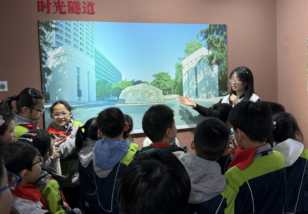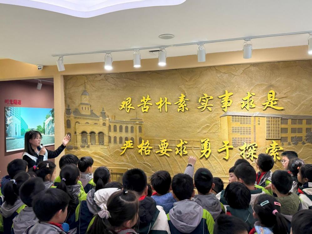 随后,师生一行走进张闻天纪念馆,通过珍贵的历史资料与影像,重温这位杰出校友的革命精神与家国情怀。在校史馆中,百年水利高等教育的发展历程徐徐展开——从“红帽子大学”的红色基因,到为国家水利事业输送的数万英才,厚重的历史积淀让小朋友们深刻体会到“天下有溺犹己溺”的河海担当。