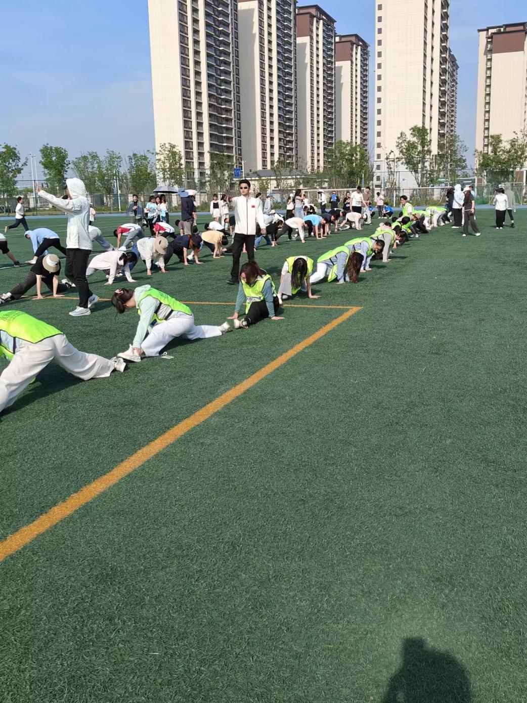15:30,“最长的腿”项目开赛。水电院20名队员在场上脚碰脚,通过横叉和纵叉的方式连成一条“人链”。队员们充分发挥身体柔韧性,首位队员的脚紧贴起点线,其余队员依次伸展,尽可能延长队伍长度。尽管部分队员因体力不支稍有晃动,但大家相互鼓励,最终坚持到裁判宣布结束,并以稳定的表现获得第八名。这一成绩不仅体现了队员们的个人能力,更彰显了团队的凝聚力。