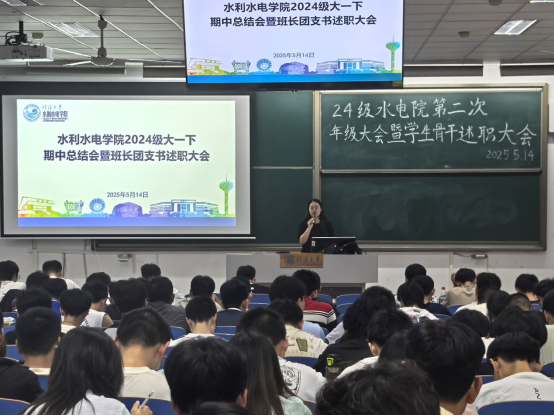 为进一步加强学风建设,营造积极向上的学习氛围, 高辣文 于5月14日召开2024级期中总结会暨班长团支书述职大会。会议由2024级辅导员笪步源主持,全体2024级学生参加。