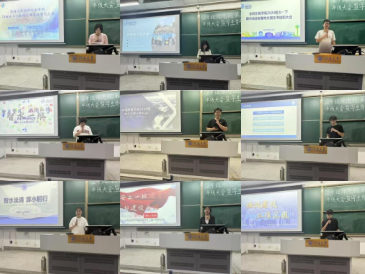 班长团支书述职,凝聚班级奋进力量。会议最后,各班班长、团支书依次上台述职,围绕班级管理、学风建设、活动组织、获得成果等方面总结上半学期工作,分享班级建设经验,并提出下一阶段改进计划。 从“课堂考勤管理”到“学习小组互助”,从“主题班会开展”到“班级凝聚力提升”,各班班委的汇报展现了2024级学生骨干的责任担当与务实作风。辅导员对各班工作给予肯定,并希望班委继续发挥带头作用,带领班级同学共同进步。