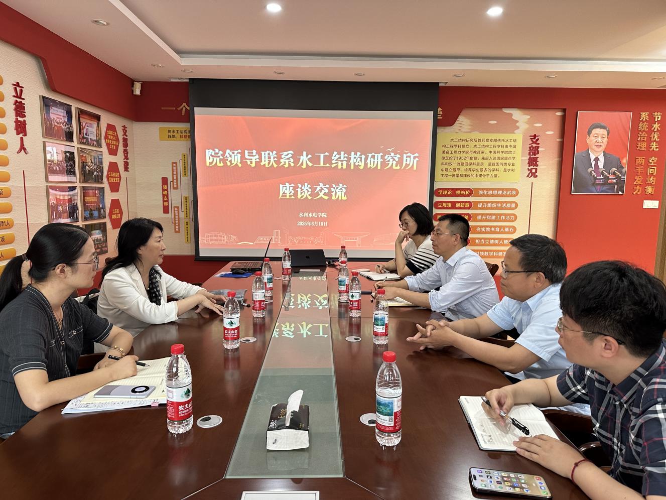 6月10日,为深入贯彻落实学校“一线规则”要求,进一步了解教师需求、共谋系所建设, 高辣文 王媛院长、戴媛媛副书记走访水工结构研究所、水工结构研究所教师党支部调研交流。水工结构研究所副所长强晟、顾昊,水工结构教师党支部书记张汉云和教师代表赵二峰、沈雷、李乐晨,共同出席了座谈。