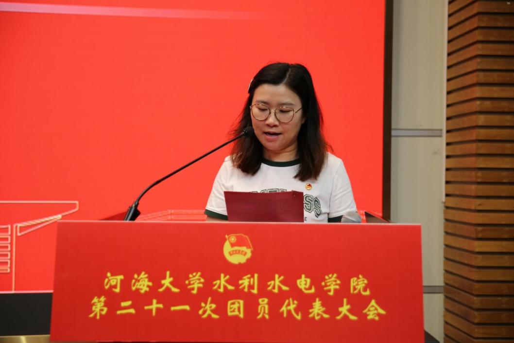 院团委书记笪步源代表学院团委作题为《凝心聚力担使命,奋楫扬帆启新程,为培育新时代水利英才贡献青春力量》的工作报告。报告以“守正创新强根基,服务大局显担当”“踔厉奋发启新程,勇毅前行谱华章”两大板块,系统总结上一年度团委在思想引领、社会实践、校园文化、创新创业等领域的工作成效,同时围绕团结引领团员青年建功新时代,从强化政治引领、深化品牌建设、优化服务体系等方面作出展望与号召。
