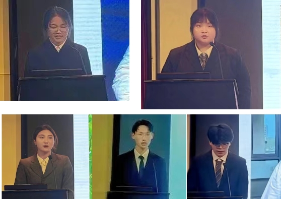 主席团候选人依次发表竞选宣言。经过现场投票,2022级汤雨诺当选学生会主席,2023级李盈、柯坤、寇泽宇当选第二十九届水电院学生会主席团成员。
