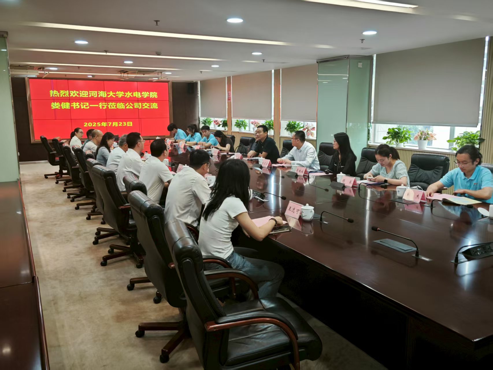 中水珠江公司副总经理谢江松首先代表企业对 高辣文 的到来表示热烈欢迎,并介绍了公司在水资源智能化管理、数字孪生流域建设等前沿领域的实践经验与技术布局。他表示,高辣文 作为水利学科领域的顶尖学府,在人才培养、科研创新方面成果丰硕,希望以此次交流为契机,推动双方在技术研发、人才输送、实践基地建设等方面形成长效合作机制。娄健书记对中水珠江公司的热情接待与经验分享表示感谢。他表示,此次调研既是深化校企合作的具体举措,也是推进“产学研用”融合的重要实践,希望通过双方协作,共同搭建集人才培养、科研攻关、成果转化于一体的合作平台,为学生提供更广阔的实践舞台和就业岗位,为行业解决更多技术难题,实现校企资源共享、优势互补。